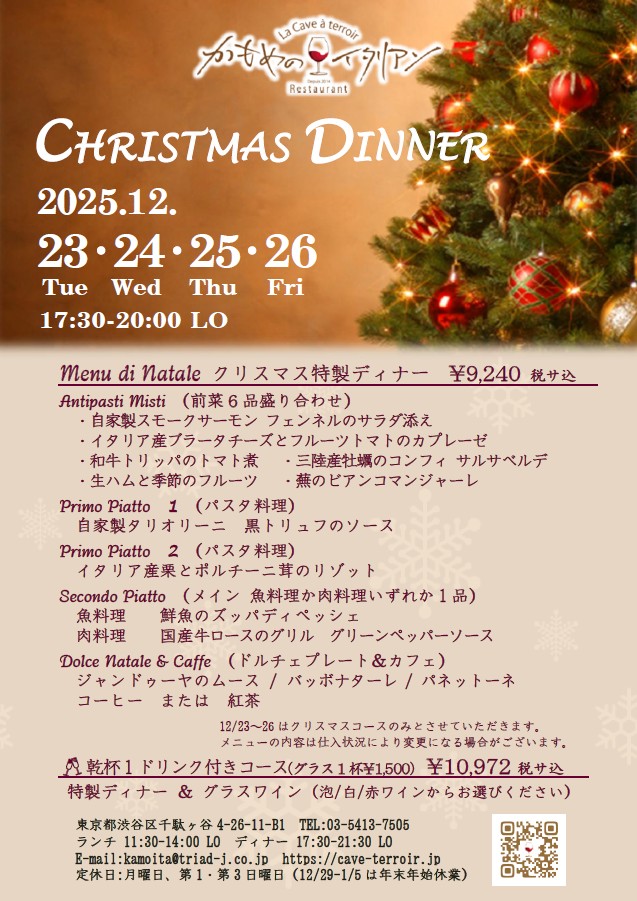 🎄Christmas Dinnerのご案内 12月23・24・25・26日限定🎅
